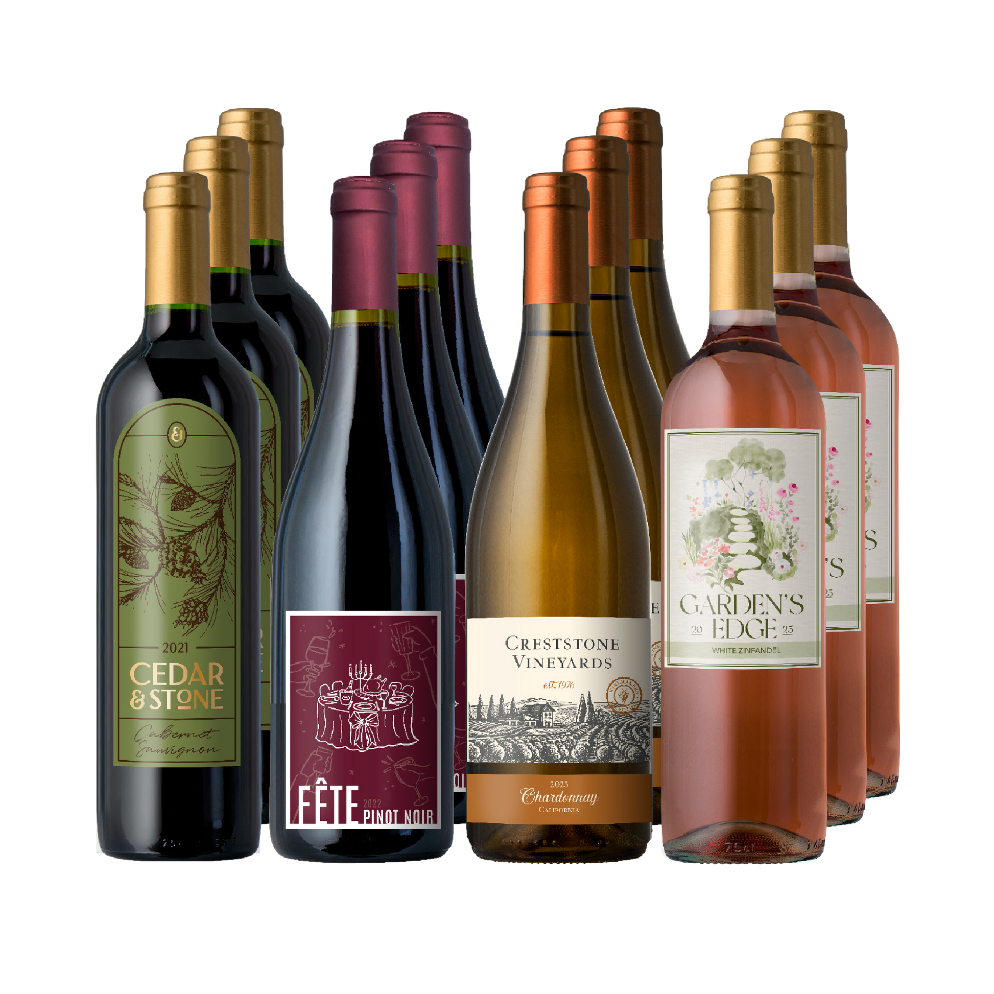needs…gifting…entertaining…special Holiday meals! Your choice of 3 different sets. Pick your favorites and have enough on hand for dinners at home, entertaining, last-minute gifts, or send an impressive gift. CA… All 750ml.