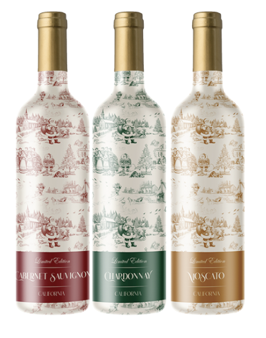 Turn up the holiday sparkle with this trio of California crowd-pleasers, dressed in artfully illustrated bottles that look as good as they pour. This exclusive collection delivers 1 bottle each of bold Cabernet Sauvignon, smooth Chardonnay, and refreshingly sweet Moscato—because every guest deserves their favorite glass.