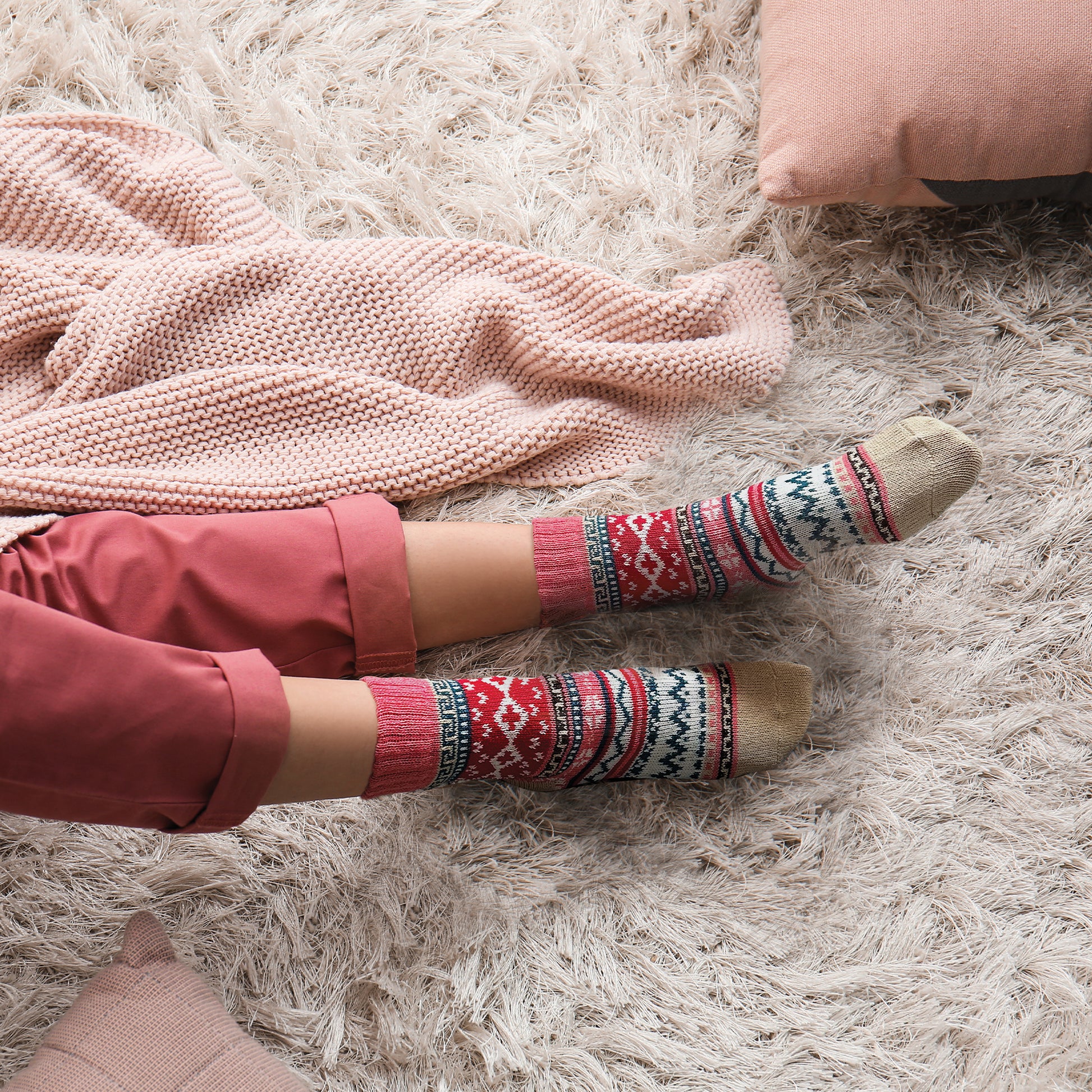 Oh, so comfortable! These socks are the epitome of the spirit of hygge, a Danish concept that embodies a feeling of coziness and well-being through simple and comforting surroundings. Sustainably made, these socks are warm, yet breathable and naturally moisture-wicking, meaning most people can wear them more than once between washes. Using a wool blend enhances the longevity and strength of these socks while allowing the fibers to stretch and conform to your foot without losing their shape.