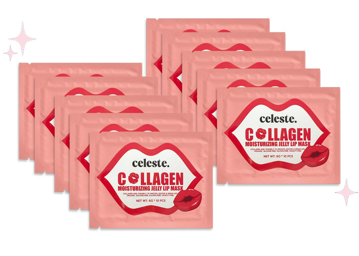 Every Box comes with a 10-pack of Celeste Collagen Lip Masks, an extra $20 value