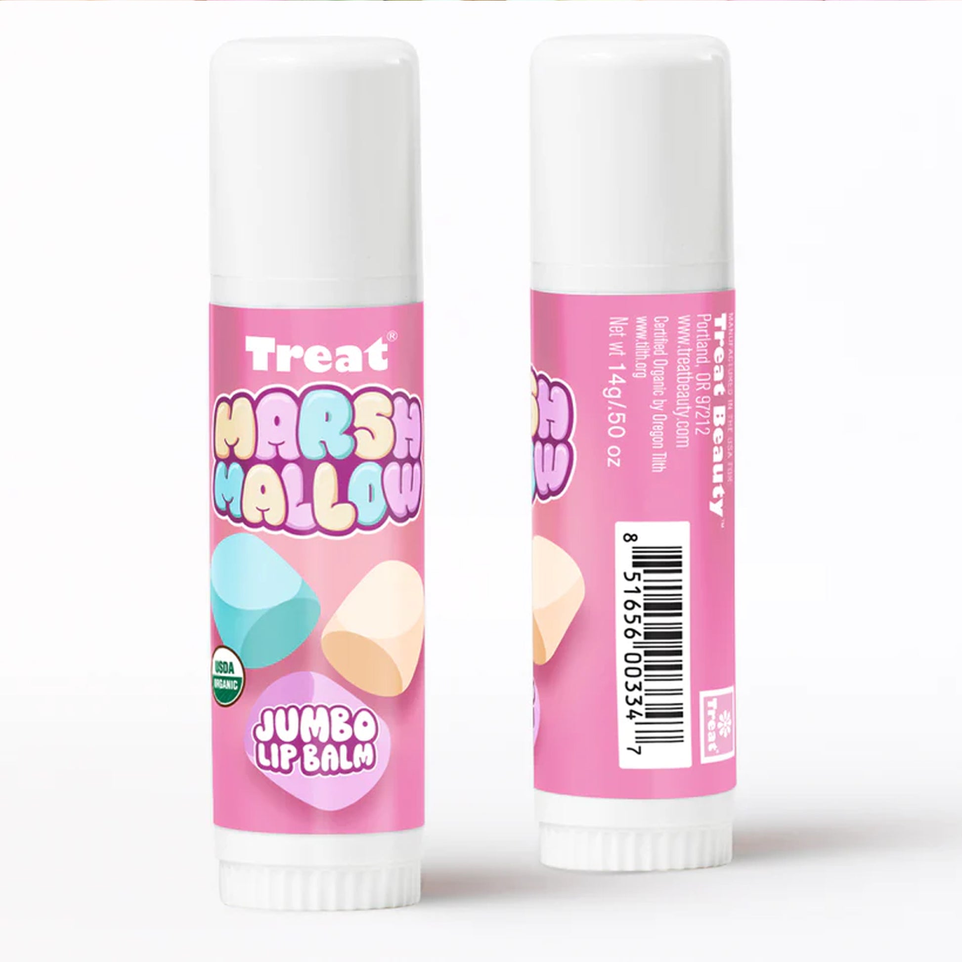 The sweet story: Treat Beauty's Marshmallow Jumbo Organic Lip Balm is an embodiment of delight, allure, and superior lip care. Envision marshmallow dreams, candy desires, and irresistible kisses – it's all within reach with this captivating creation. Immerse yourself in the wonder, and let your lips narrate the sweetest story of all.