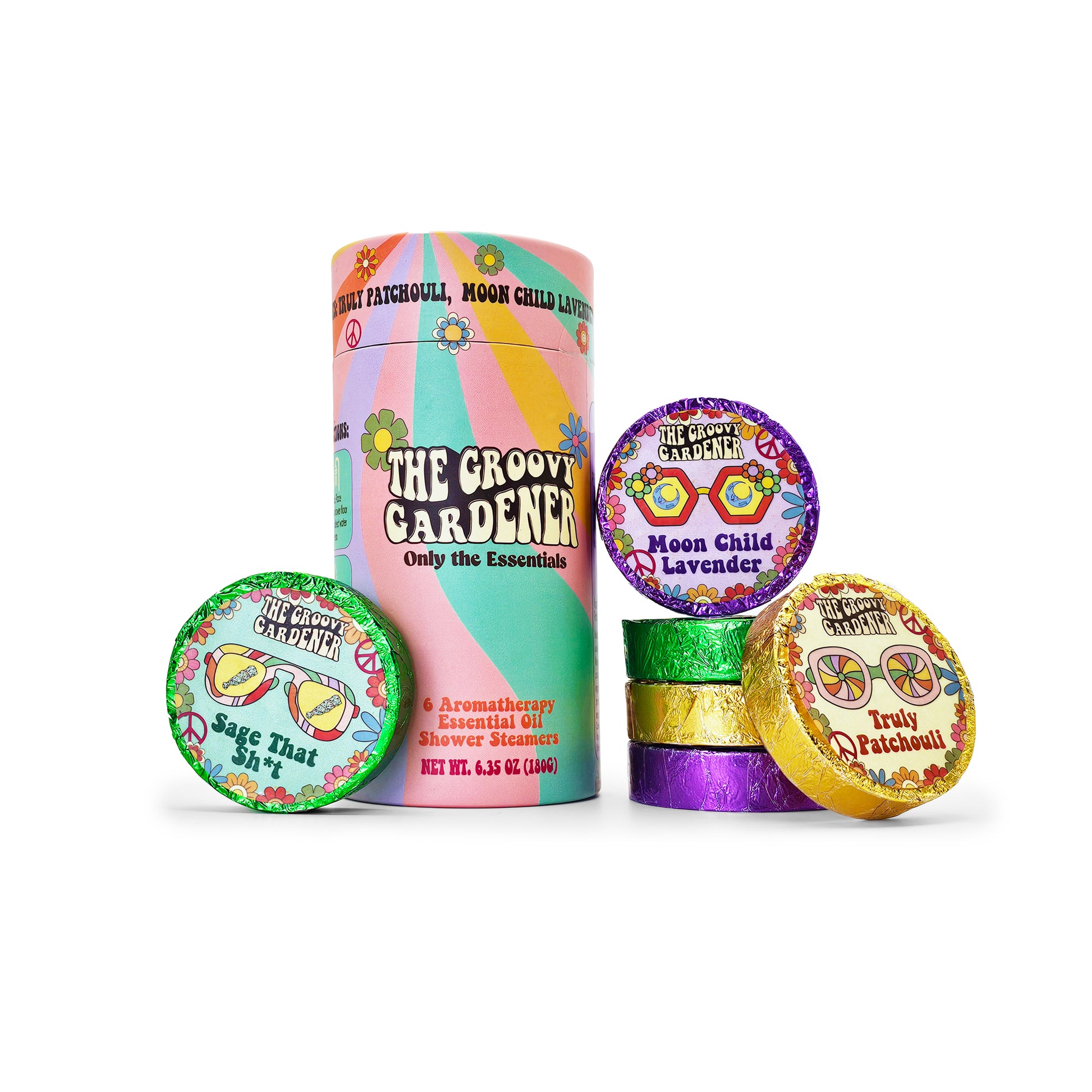 Get ready to turn your shower into a groovy oasis with these far-out shower steamers! Just pop one of these bad boys on the floor of your shower and let the hot water work its magic. Whether you're cleansing your aura with “Sage that Sh*t”, harnessing your mellow with “Moon Child Lavender”, or getting down with some righteous, “Truly Patchouli” vibes, these steamers are sure to elevate your shower game to cosmic proportions.